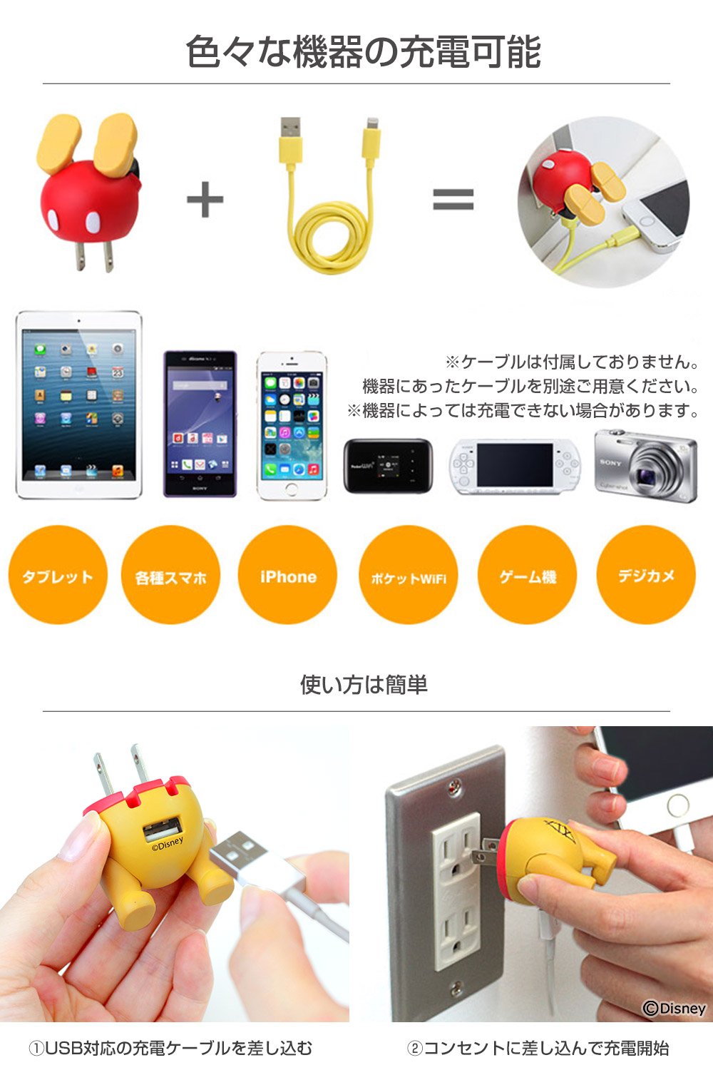 If you insert your USB charging cable in your stomach, various devices such as iPhone, Android smartphone, tablet, game machine, digital camera etc are charged OK.