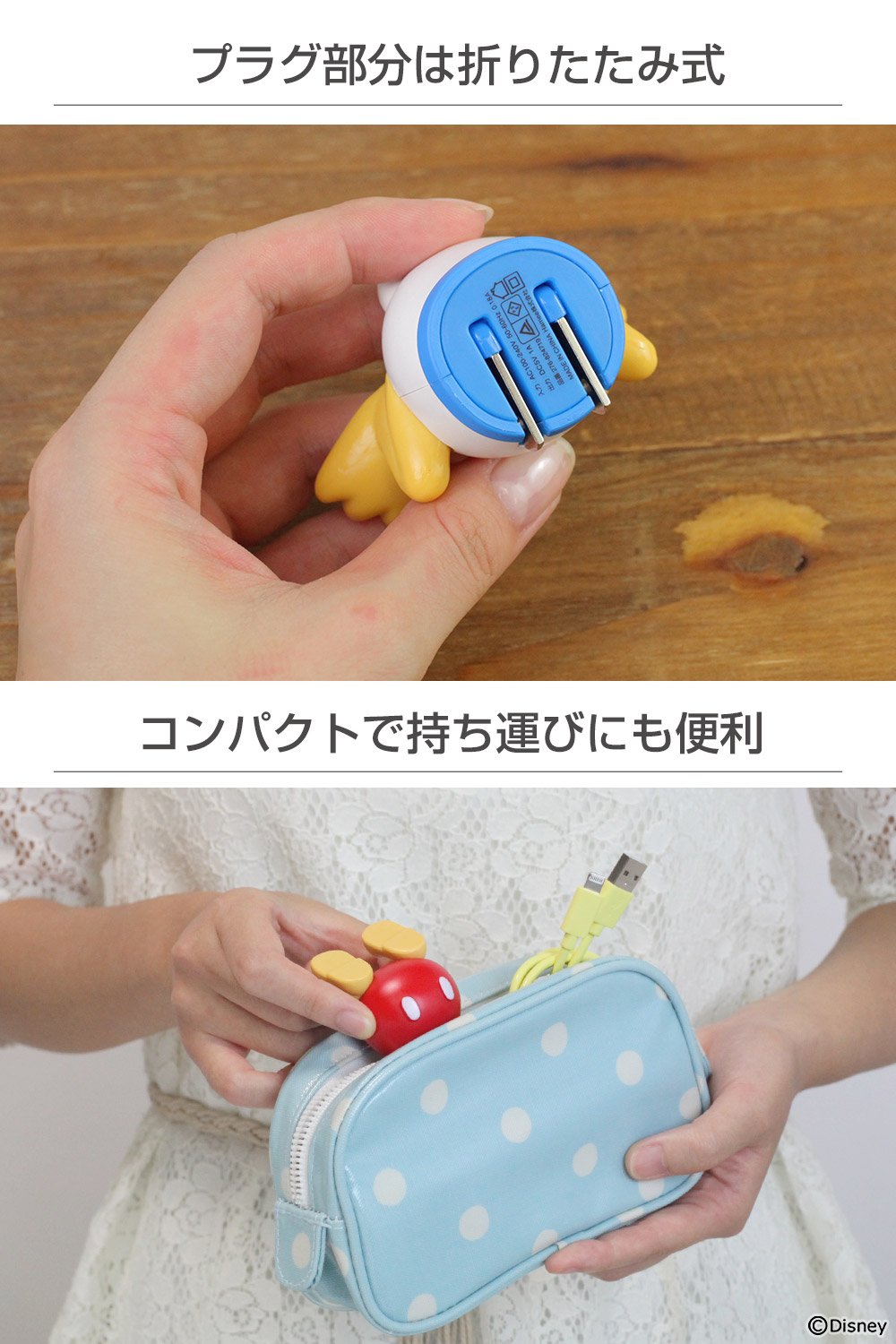 The plug is a foldable type, it does not interfere with carrying and storing.