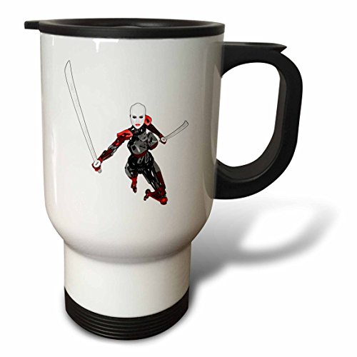 3dRose tm_212932_1 Cyborg Samurai Leaping Forward with Drawn Swords Travel Mug, 14 oz, White