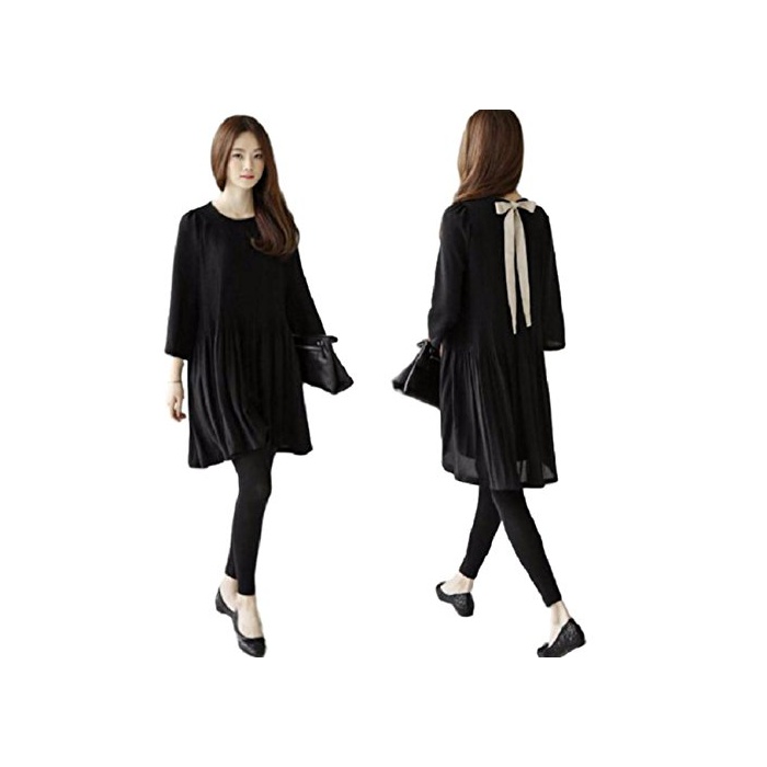 원본상품명: 今日から Lamore 着やすい マタニティ ワンピ?ス 七分袖 きれいめ フォ?マル 膝丈 背中 リボン ブラック M L XL レディ?ス c75-176