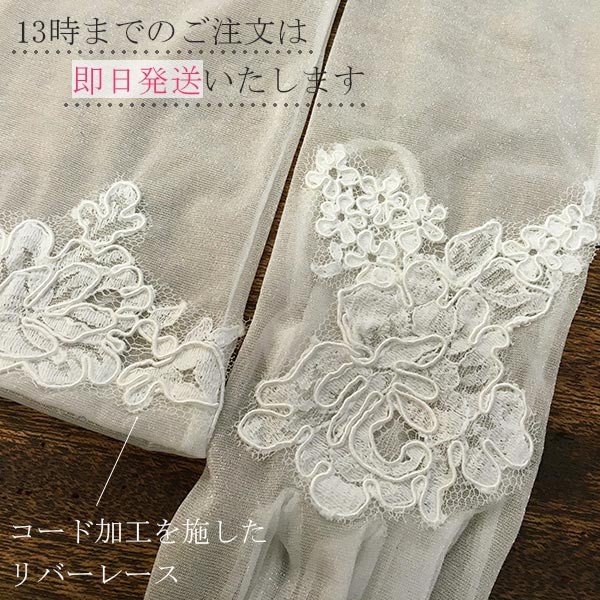 ホワイト、オフホワイト、アイボリーの3色ご用意。 ウェディングドレスに合わせてお選びください。 (*画像のグローブは 「オフホワイト」 になります。) |