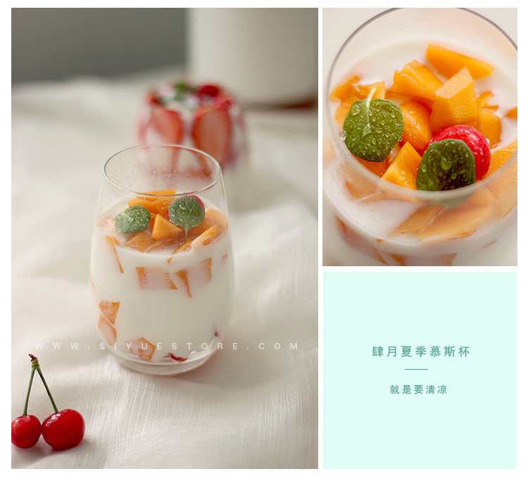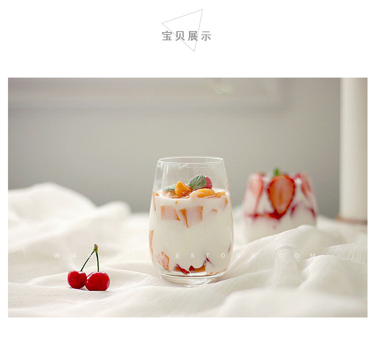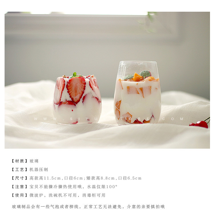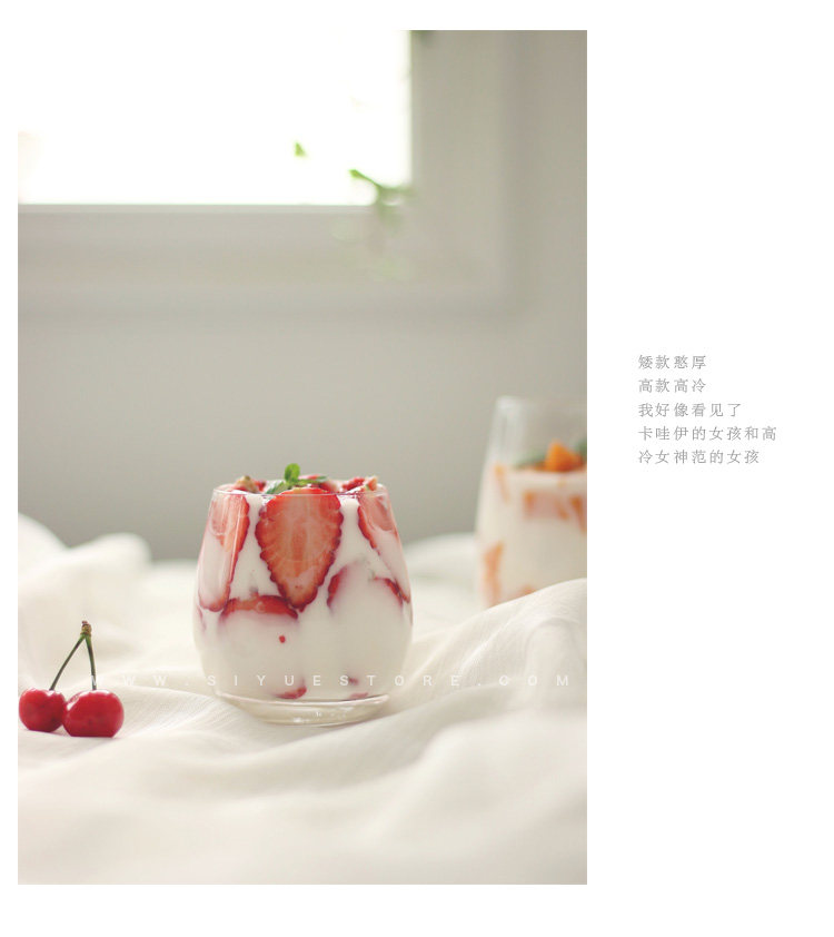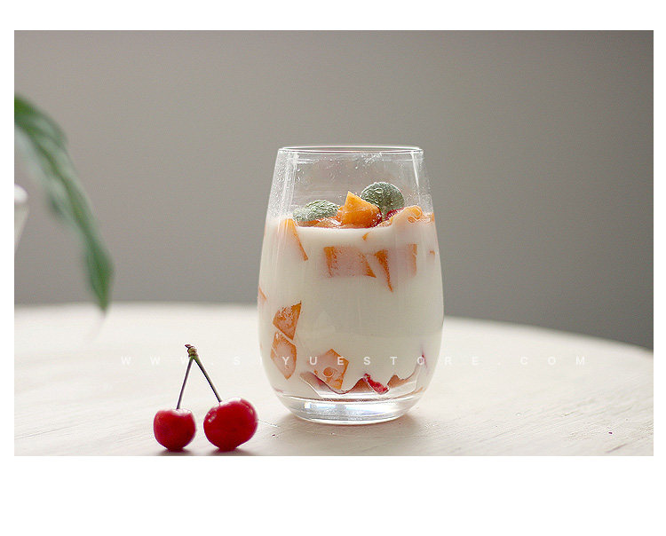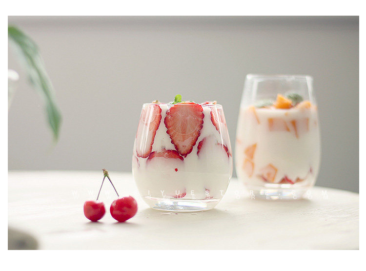 思慕雪杯酸奶杯玻璃杯椭圆大肚水杯家用果汁杯牛奶早餐杯
