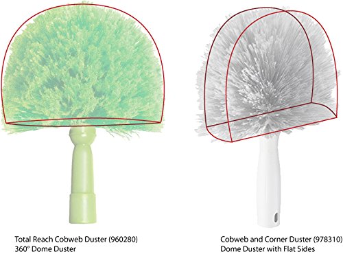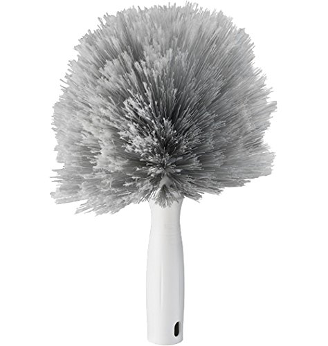 -. Feature : Flagged bristles trap and hold spider webs / Soft, poly fibers won't scratch moldings or walls / Unique shape for easier storage / Attaches to telescopic pole (not Included) for hard to reach cleaning