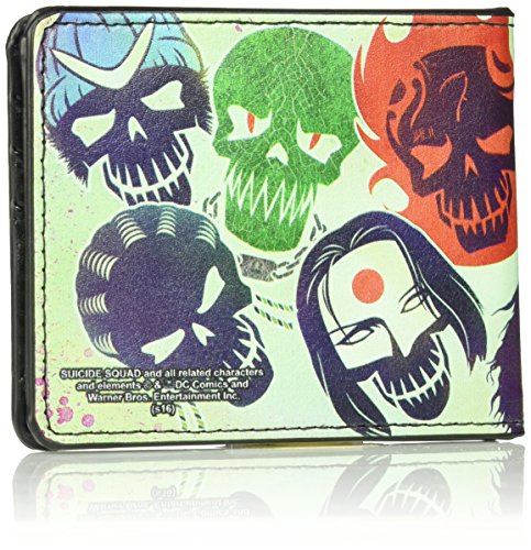 Studio : Buckle-Down Publisher : Buckle-Down Binding : Apparel Product Description This awesome men's bi-fold wallet is made from premium vegan leather. It measures 4.0x3.5x0.5 inches, and features the standard billfold, 5 card slots, and windowed id holder. The logos are applied using advanced printing technologies, so the wallet will still look good after years of hard use. This product is officially licensed by suicide squad and made in USA by Buckle-Down Inc. 0