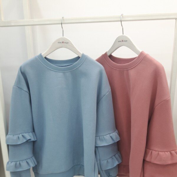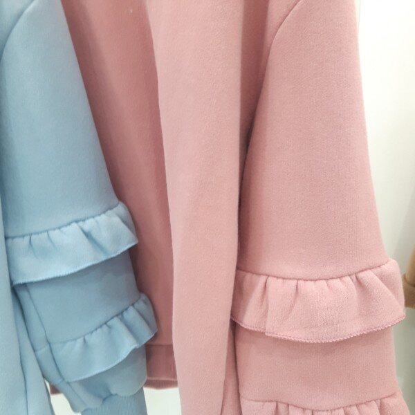 색상이 너무 사랑스러운 프릴맨투맨 입니다기모원단이고요~프릴이 귀여워요.♡