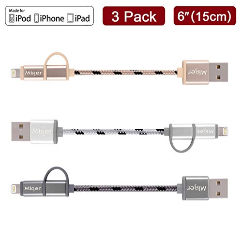 -. Title : (3Pack) Lightning Cables Miger 0.5Ft USBLink Duo Short 2 in 1 Sync and Charge Cable with Lightning & microUSB for iPhone SE/6s/6/5s/5, iPad /iPod and Samsung, Nexus, Nokia, Sony, HTC & more