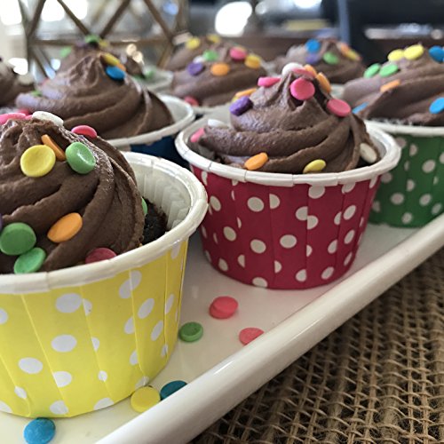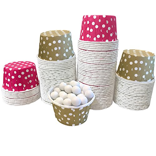 Candy Nut Mini Baking Paper Treat Cups - Hot Pink Gold White - Polka Dot - Bulk 100 Pack