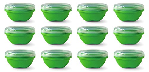 - Set of 12; 19-ounce food storage containers shaped and colored like a green apple