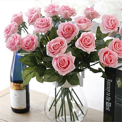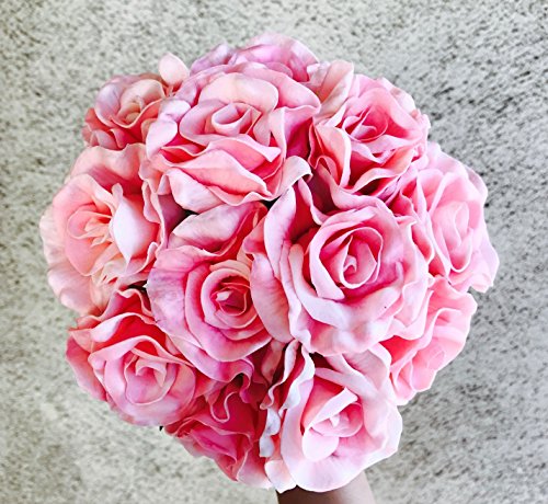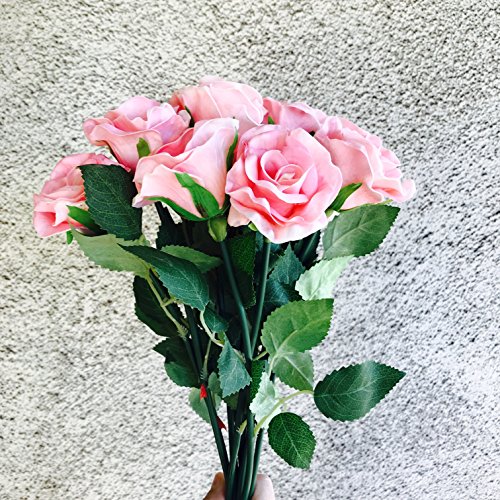 18" tall Real Touch artificial spring sweet rose flowers with thorns for arrangements, bouquets, centerpieces (6 pcs) (Shabby Chic Pink)