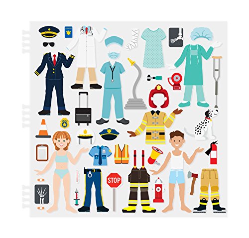 Explore a world of cool careers with this 10-page sturdy, spiral-bound sticker book. Layer the reusable stickers to dress the teacher, doctor, construction worker, police officer, firefighter, pilot, and more! Add tools and accessories to complete detailed scenes such as an airport, school, hospital, and neighborhood. The 100 stickers are easy to place, layer, and reposition. Simply place the puffy stickers on the boards, and then change the picture to change the story! This activity offers endless opportunities for kids to express their creativity, all while improving fine motor skills and communication. Format makes this kids' sticker activity set great for travel, too!.Feature