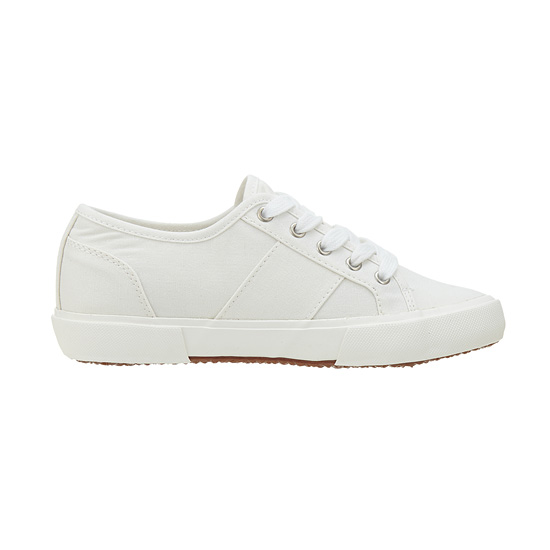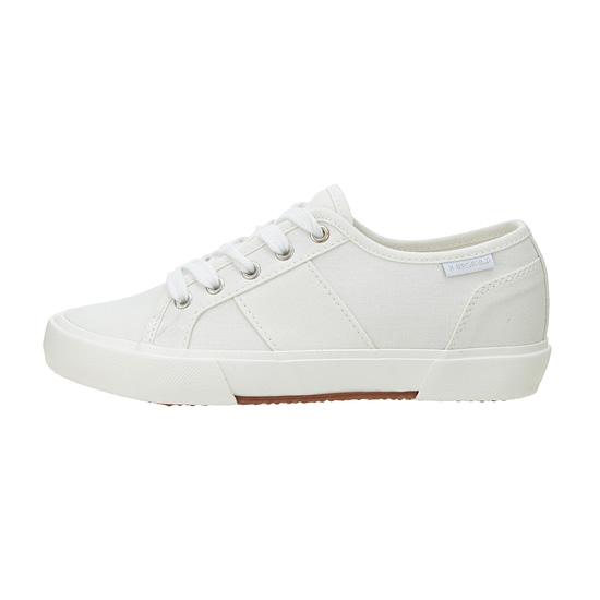 - 은은한 광택감의 면 소재를 사용하여 세련된 여성 스니커즈.