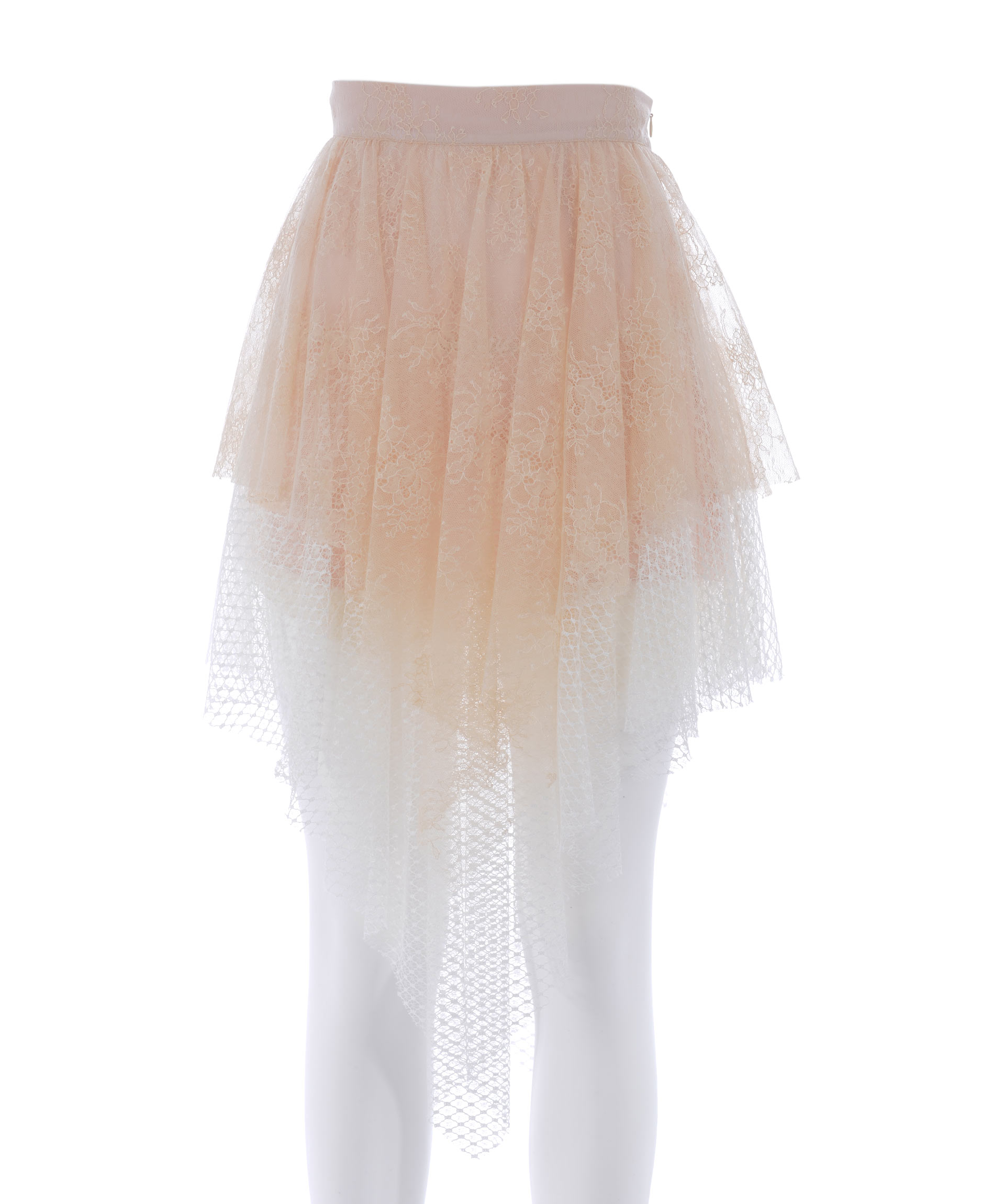Gonna Philosophy di Lorenzo Serafini in pizzo Ecrù/Bianco. Fondo asimmetrico. Chiusura laterale con zip a scomparsa. Foderata. Misura in foto 42 100% poliammide Fodera: 100% poliestere