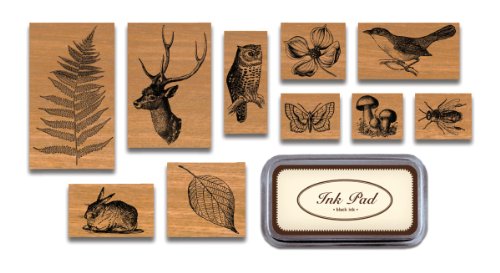 Cavallini Rubber Stamps Flora & Fauna, Assorted with Ink Pad