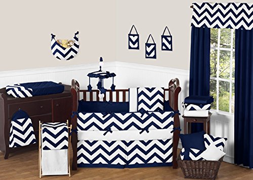 Sweet Jojo Designs Zig Zag Navy and White Chevron Musical Baby Crib Mobile