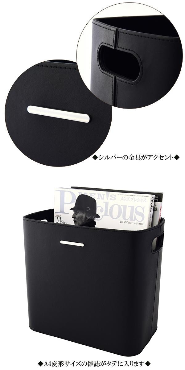 フェイクレザーの質感とシルバーのアクセントでモダンな雰囲気を演出しつつ、潔いほどにシンプルでスタイリッシュなラックです。十分な量の雑誌を収納できる機能性がありながらも、コンパクトなので置き場所にも困りません。 |