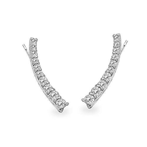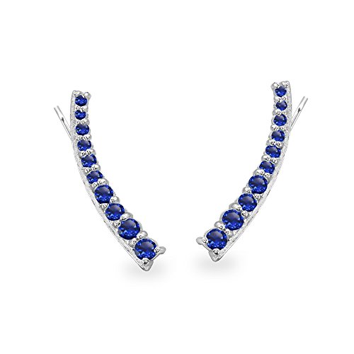 Simpe and chic, these stunning crawler earrings for women and teen girls feature graduating round gemstones in a curved journey setting. These trendy earrings are crafted of fine sterling silver and are secured with hooks.