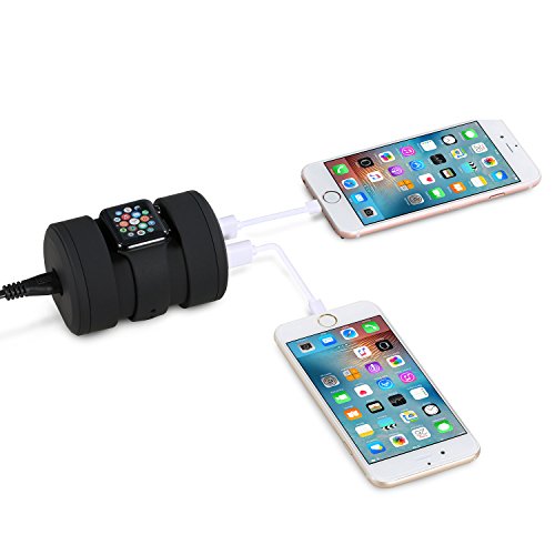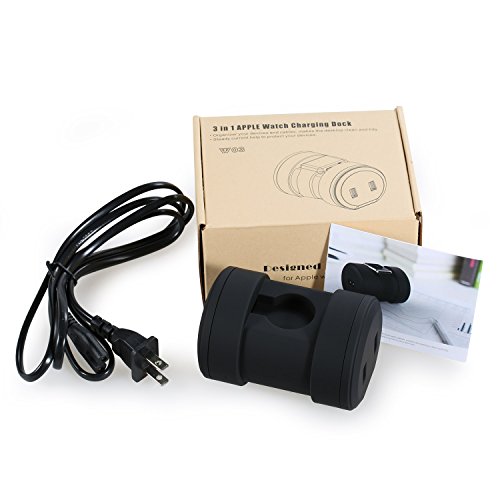 -. Feature : 3-Port Multifunctional Charging Stand: One USB port is built latently for Apple Watch(Series 1 and Series 2)and other two outside for other devices such as Phone 7/7Plus, iPhone 6/6s, iPad Pro, Kindle, Samsung S7/edge. Supporting charging up to 3 devices simultaneously / Cable Storable: Simply rotating the side cover counterclockwise presents you a spacious compartment for store your long Apple Watch charging cable, which is a ideal way saving you from cord clutters and delivers a organized table/desk / Ultra Compact Design: Only 3.5oz weight, size as compact as 3.7×2.6×2.5inch, comes as a modern premium appearance, superb lightweight and exquisite show a beauty of simplicity, makes it very portable without losing fashion / Guaranteed Safety and Smart IC: environment-friend ABS material in painting, providing superb touch feeling while maintaining the safety, with the intelligent chip built-in, any of the 3 USB ports can provided current needed by your Phone and Watch / Package included: