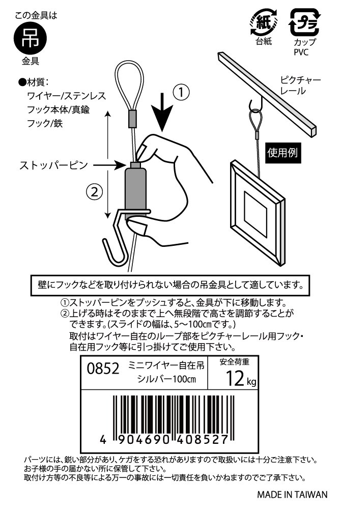 Daisen picture frame hanging bracket mini wire freely hanging 100cm N05040852 freely for hanging