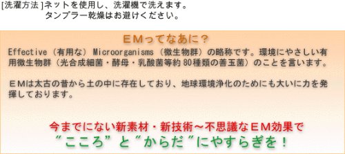 高級のEMバイオ加工繊維と丁寧な作りで着心地が良いです。