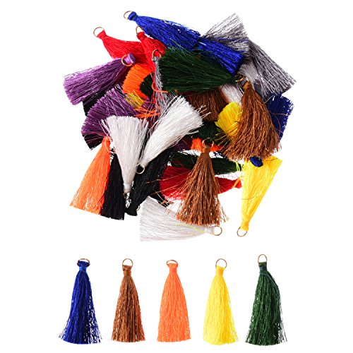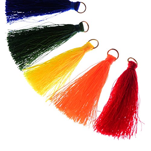 Pangda 50 Pieces 50 mm Tassel Pendants Silky Tassels with Gold Ring for Earring Bag Keychain DIY Jewelry Accessory, 10 Colors