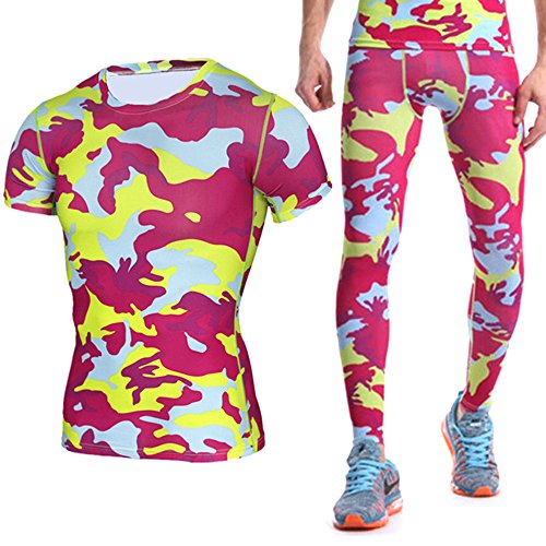 -. Binding : Apparel -. Brand : 1Bests -. Department : mens -. Feature : Material: 85% Polyester and 15% Spandex. / Moisture Sensing/Quick time Dry/TWO-WAY Air Circulation. / Smooth fabric: Soft and elastic, tight-fitting stretch,Provides extreme comfortable and compression without restriction. / Ergonomic design: The enhancement of blood flow of motor function and physiological function,Exercise more comfortable. / For all sports activities sportwear,Perfect option during various indoor activities and outdoor excursion. -. ProductGroup : Apparel -. ProductTypeName : PANTS -. Title : 1Bests Men's Running Fitness Camouflage Compression T-Shirt Set Short Sleeve T-Shirt + Trousers