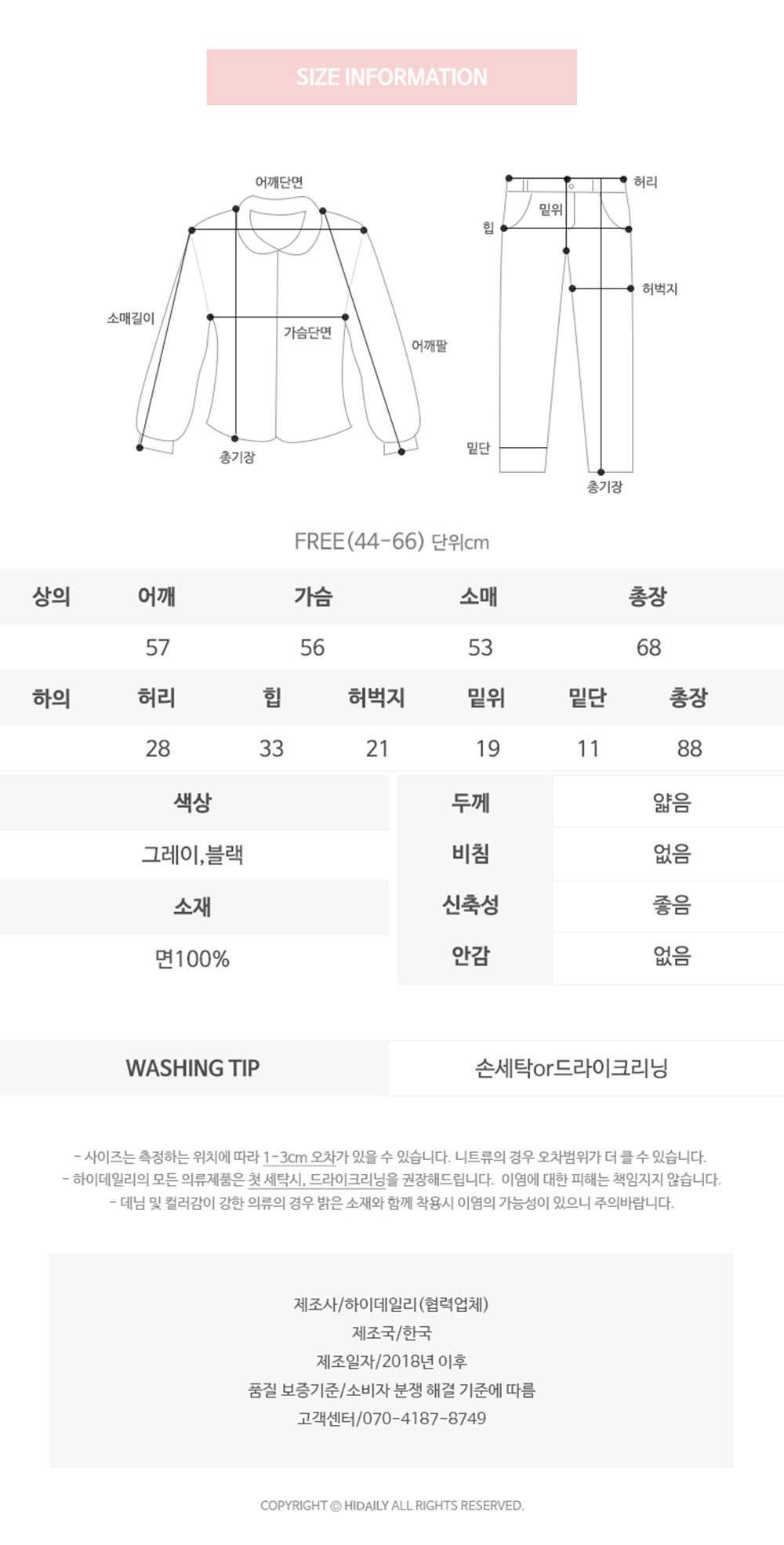 첫 세탁시 손세탁, 단독세탁 및 드라이크리닝을 권장합니다.