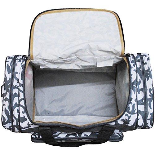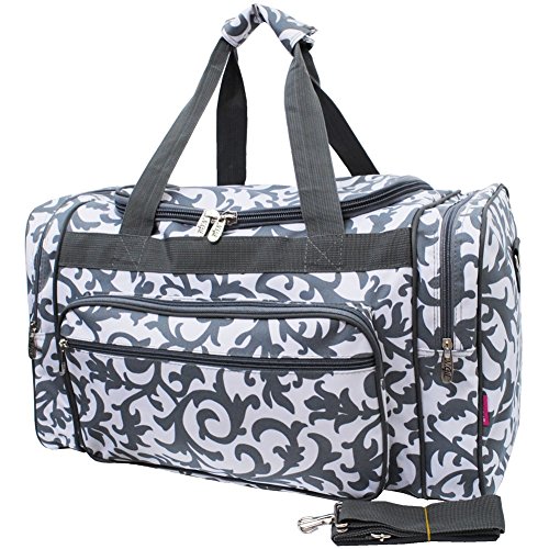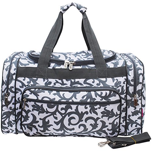 Product Description Front Zipper Pocket(s) for keys, phone or anything that needs to be keept at hand. The Rubber Feet on the Bottom Help keep it dry if floor is wet. Double Zipper Closure and 2 side zipper compartment. Carrying straps snap together with Velcro for easy carrying. Adjustable Shoulder Strap and perfect size with dimensions of Dimensions: 20"(L) x 10"(H) x 12"(W) 0