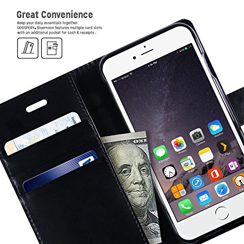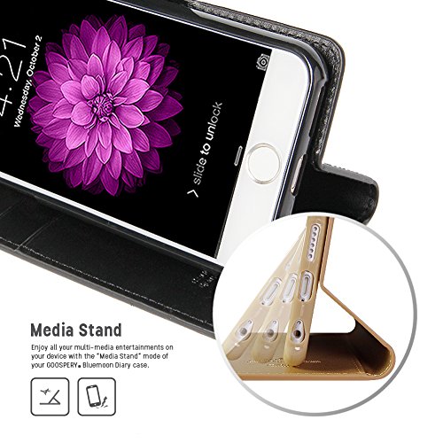 iPhone 6S / 6 Case, [Drop Protection] Goospery® Blue Moon Diary [Wallet Case] Smooth Synthetic Leather Texture [ID Card & Cash Slot] w/ Stand Cover for iPhone 6S / 6 (4.7") - Black