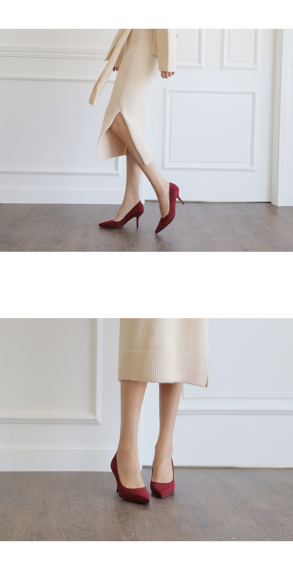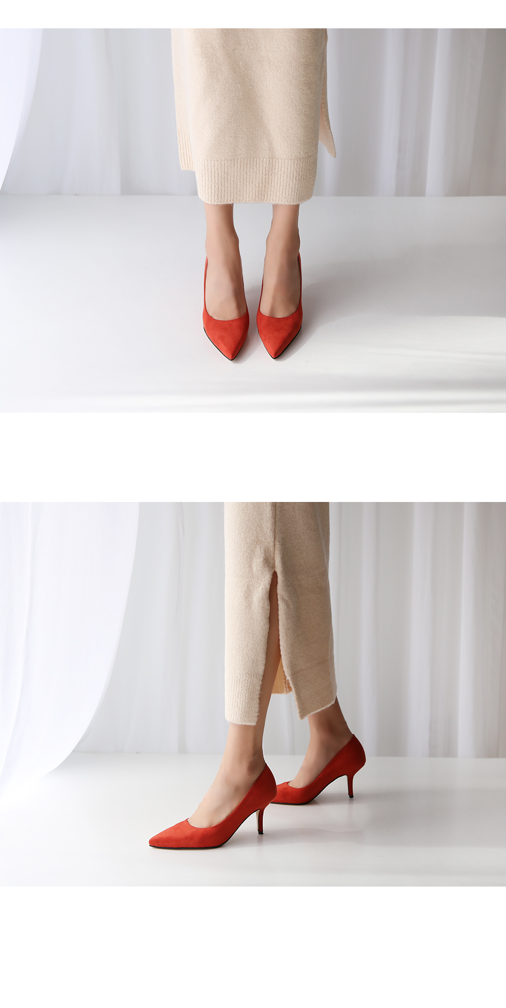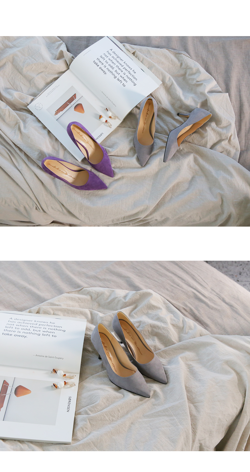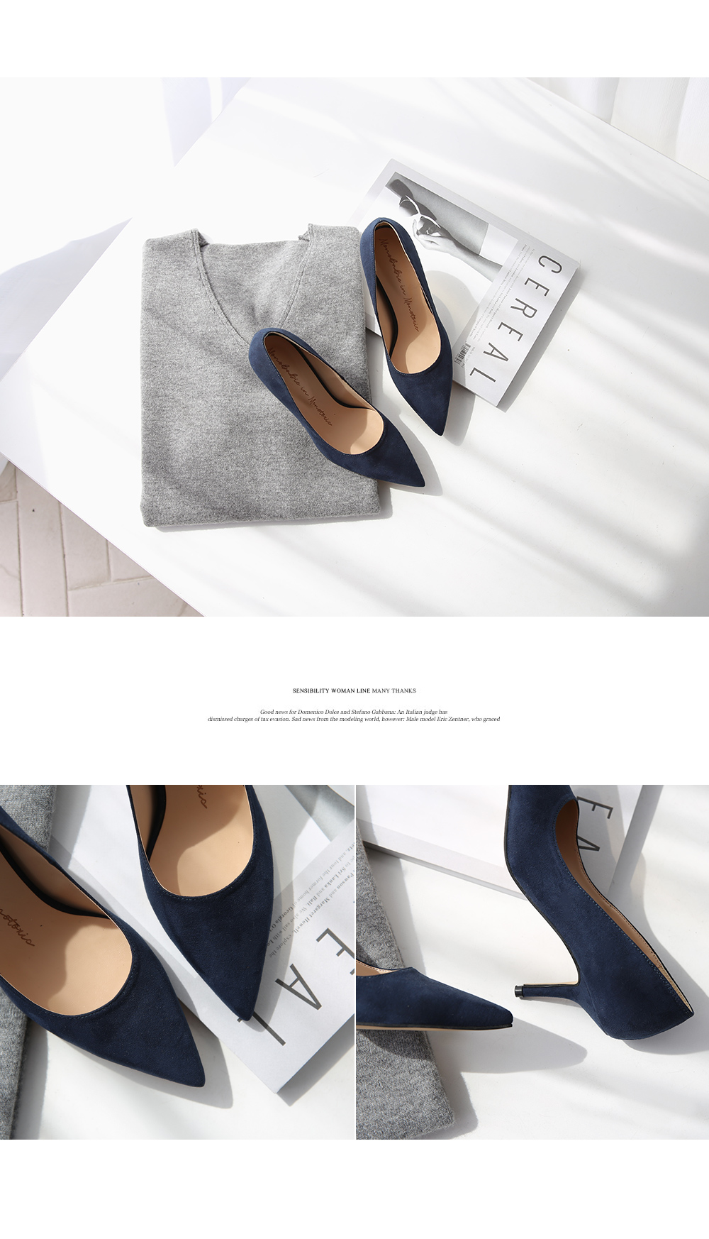 3월부터 라스트 개발 들어갔고 오랫동안 준비한 제품으로 아마 국내에서는 처음 선보이는 느낌의 쉐입이실거예요 스틸레토 코에 양사이드를 나이프로 반듯하게 밀어낸듯한 엣지를 주어 일반 스틸레토 힐 보다 더 뾰족하고 슬림하게 느껴지고 7센티 높이의 스틸레토 중에서, 브랜드에서도 시중에 나와있는 기성 디자인 중에서도 이만큼 세련되고 아찔하다 느껴진 제품을 본 적 없을정도로 자신있게 권장해드리는 제품입니다.