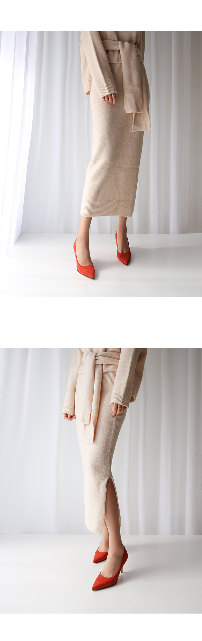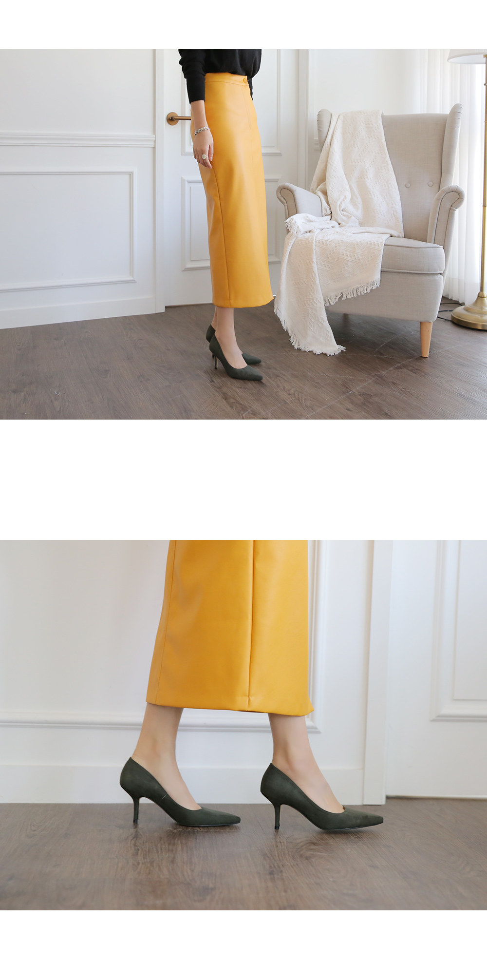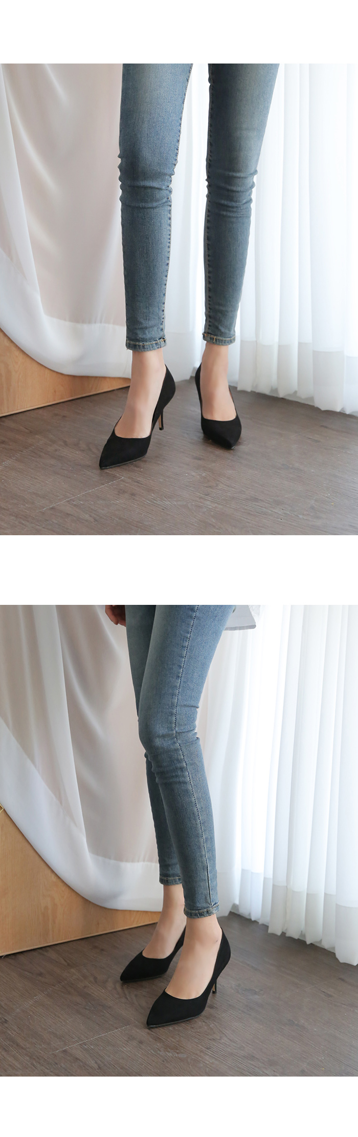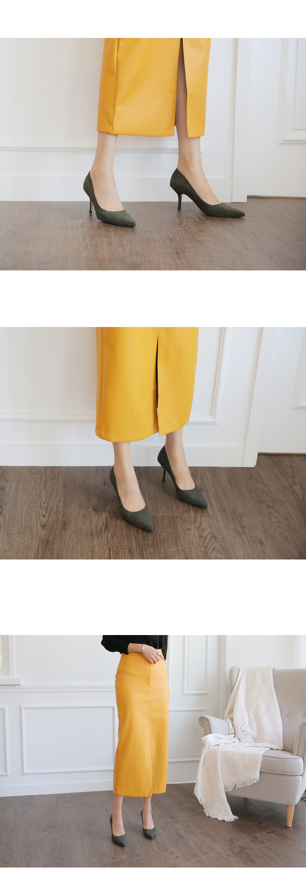 3월부터 라스트 개발 들어갔고 오랫동안 준비한 제품으로 아마 국내에서는 처음 선보이는 느낌의 쉐입이실거예요 스틸레토 코에 양사이드를 나이프로 반듯하게 밀어낸듯한 엣지를 주어 일반 스틸레토 힐 보다 더 뾰족하고 슬림하게 느껴지고 7센티 높이의 스틸레토 중에서, 브랜드에서도 시중에 나와있는 기성 디자인 중에서도 이만큼 세련되고 아찔하다 느껴진 제품을 본 적 없을정도로 자신있게 권장해드리는 제품입니다.