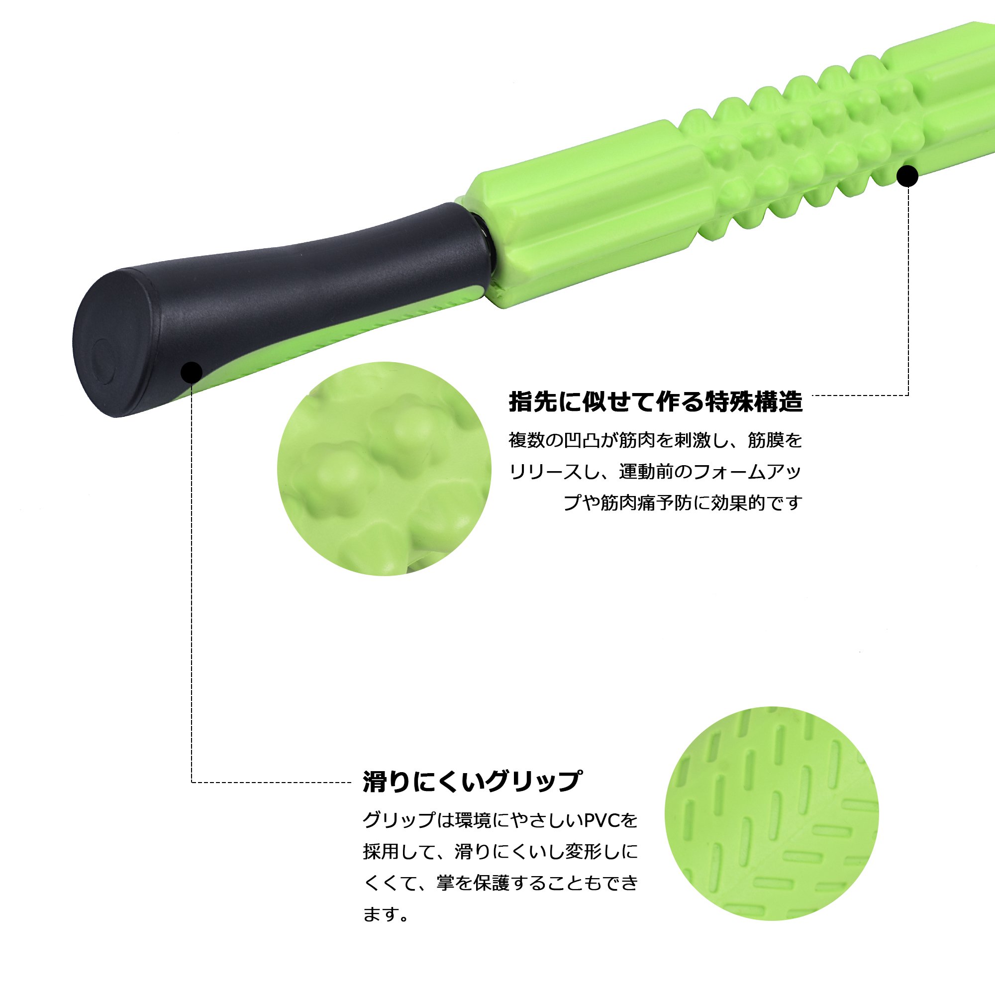 Multiple irregularities stimulate the muscle, release the fascia, it is effective for form up before exercise and muscle pain prevention.