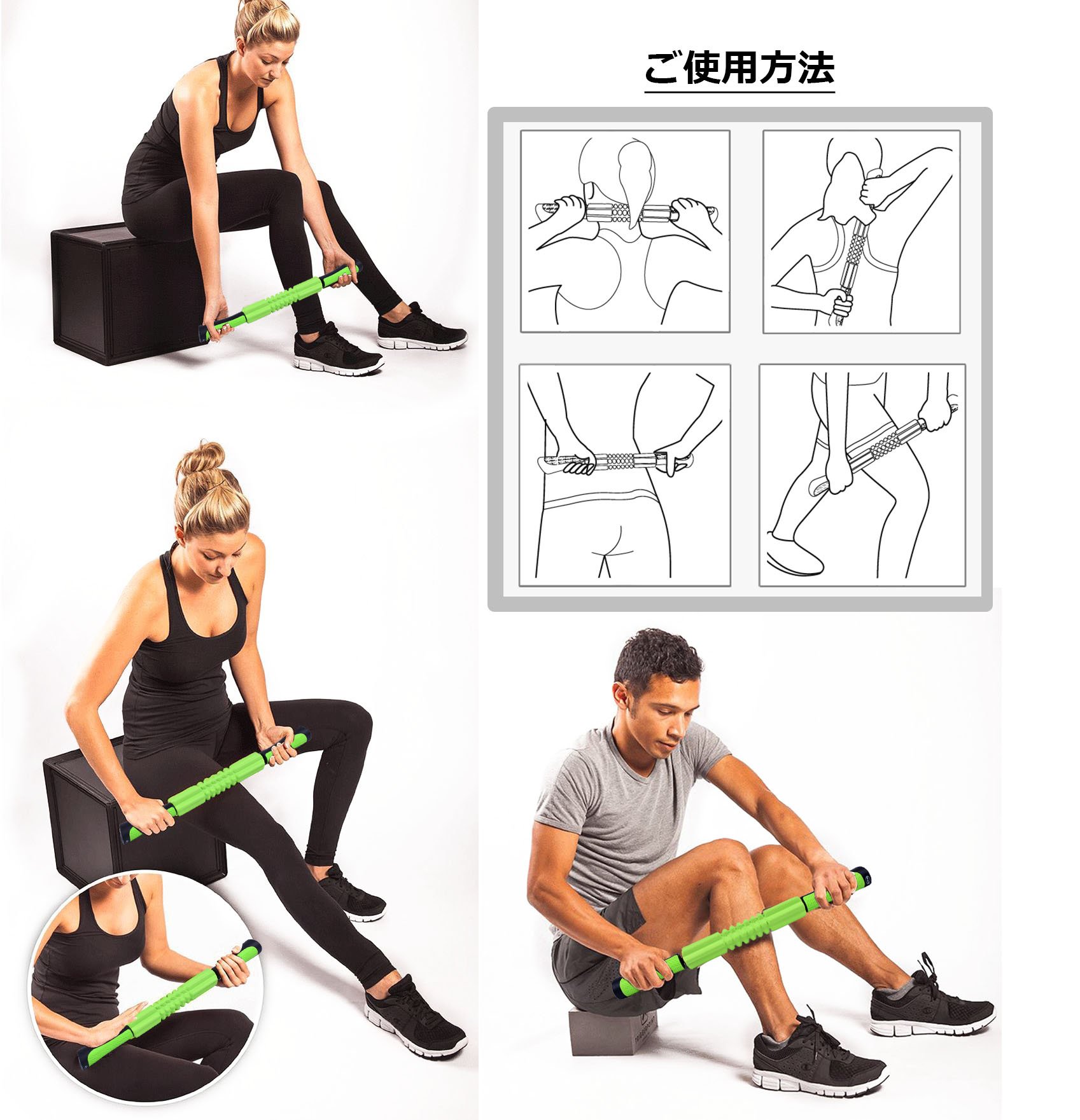 Also, in order to eliminate muscle rigidity and increase flexibility, it is effective to massage all muscle groups with a massage stick before going to bed and getting up.