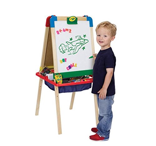 -. Feature : Stand-up easel for painting, coloring, lettering and more / ncludes dry-erase board, chalkboard, locking paper-roll holder, child-safe paper cutter, 4 easy-clip grips and 2 large plastic trays, that can be removed for easy cleaning. / Paper, paint, paint cups, paint brushes and chalk sold separately. / 3-in-1 Magnetic Wood Easel comes with a convenient open storage tray that offers an ideal location for storing paints, markers, crayons, chalk, magnetic letters and an eraser. / t has a convenient clip on the boards for hanging a poster or blank sheets of paper for drawing.
