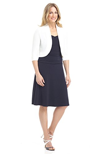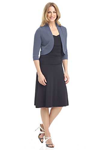 -. Feature : Proudly Made In Canada. Easy care, machine washable. / OUTFIT IDEA: Same fabric as our Rekucci solid dresses - wear together for a seamless look! 92% Polyester, 8% Spandex. / ORIGINAL DETAILS: 3/4 banded sleeves and rounded hemline for a feminine look. Chic. Classic. Modern. Model is 5'9" and wearing size Small. / ENDLESSLY VERSATILE: Wear with any sleeveless styles, tank tops or dresses, regardless of season! Your new wardrobe go-to item. / SHOWN WITH: Rekucci Women's Slimming Sleeveless Fit and Flare Tummy Control Dress with Sweetheart Neckline -looks great with all Rekucci Dresses, wear with our crossover fit and flare sleeveless style