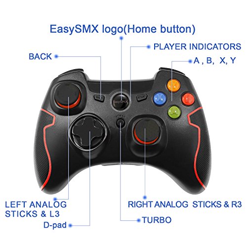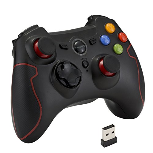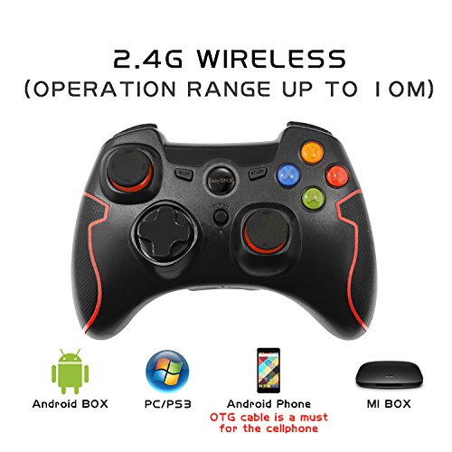 [Father's Day Gift] EasySMX Wireless 2.4g Game Controller Support PC (Windows XP/7/8/8.1/10) and PS3, Android, Vista, TV Box Portable Gaming Joystick Handle Black and Red