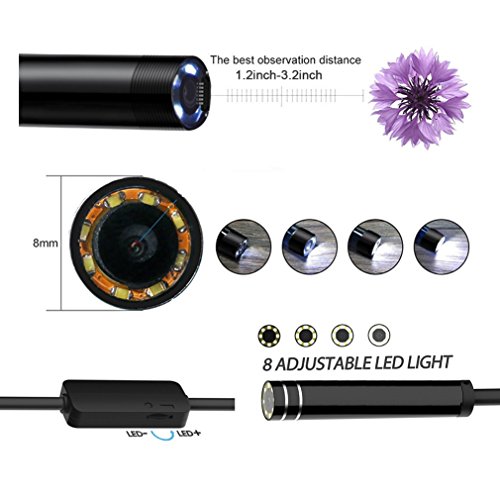 ▶【IP68 Waterproof & 8 Adjustable Led lights】Waterproof IP68 Snake high quality camera can suitable for various types of environment, 8 adjustable Led light on the camera supply a clear and bright view, low-light or dark area, damp or wet area etc. so you can use it for plumbing,automobile maintenance and air conditioning test,you can enjoy testing out it's quality and durability!
