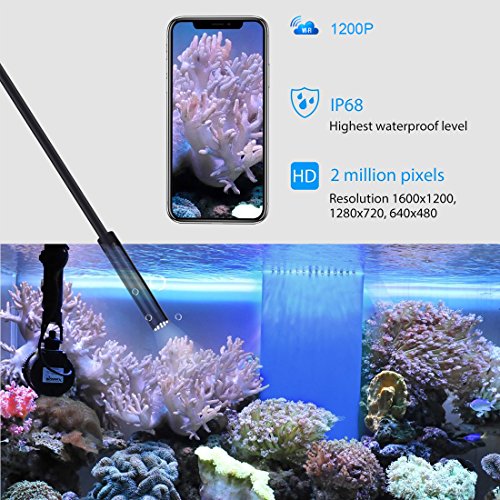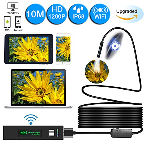 Wireless Endoscope,Unee1 Updated 1200P WiFi Borescope Inspection Camera With 2.0 Megapixels 1200P HD Snake Camera For Iphone and Android Smartphone,Table,Ipad,PC - Black(32.8FT/10M)