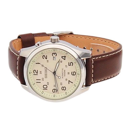-. Title : Seiko Kinetic SKA723 Beige Dial Brown Leather Band Men's Watch