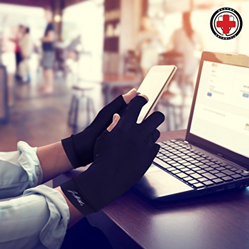 Doctor Developed Copper Infuse Arthritis Compression Gloves - Relieve Arthritis Symptoms, Increase Circulation, Reduce Inflammation & Enhance Recovery - BONUS: FREE Dr. Arthritis Handbook