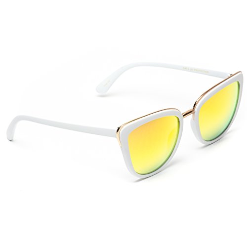 Womens Cat Eye Mirrored Revo Reflective Lenses Oversized Cateyes Sunglasses (White / Gold Flashing Frame, 50)