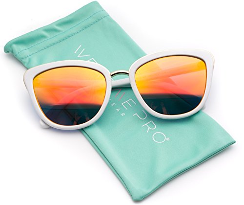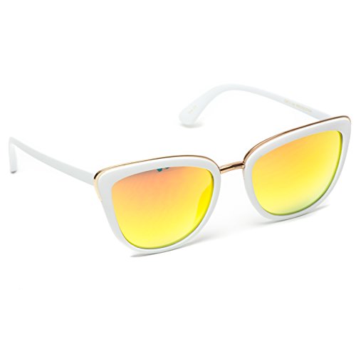 Womens Cat Eye Mirrored Revo Reflective Lenses Oversized Cateyes Sunglasses (White Frame / Mirror Red/Orange, 50)