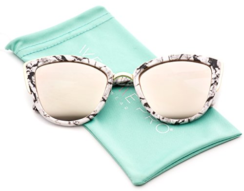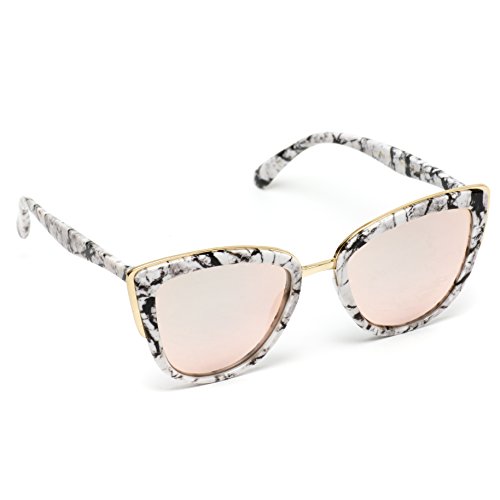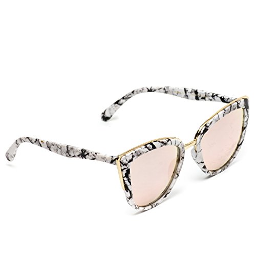 Womens Cat Eye Mirrored Revo Reflective Lenses Oversized Cateyes Sunglasses (Marble White Frame / Mirror Pink Lens, 50 mm)