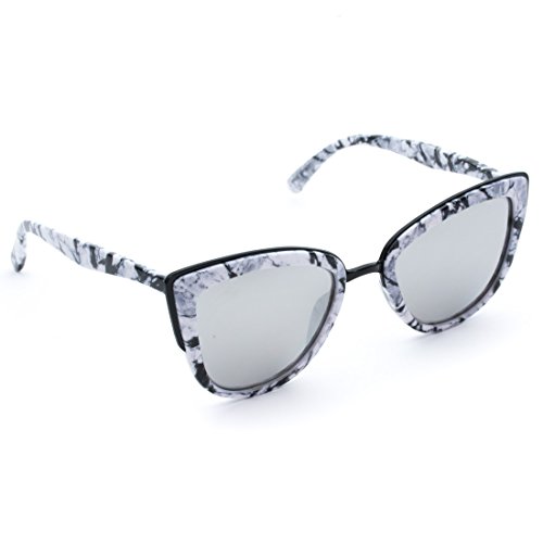Womens Cat Eye Mirrored Revo Reflective Lenses Oversized Cateyes Sunglasses (Black Marble / Mirror Silver Lens, 50)