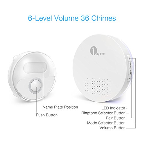 There are 36 chimes with 6 levels of adjustable ringing volume (High / Medium / Low) from 25-110 dB, you can choose anyone you like. In addition, there are 3 modes to choose (Sound only /LED Flash only /Sound and LED Flash), you can choose the LED Flash mode when someone is sleeping(especial a baby). This mode also design for the person who is hearing impaired.