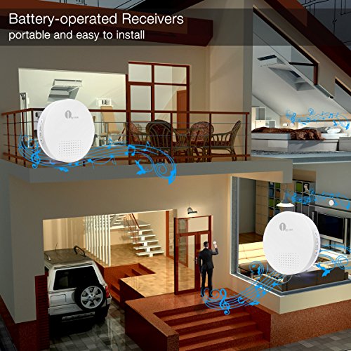 Each receiver can work with up to 5 additional push buttons, it can be configured with different tones, so it is convenient for you to distinguish which door the visitors will enter from. It will bring a lot of convenience to your daily life, use it for front, side, or back doors to gain security and a whole new level of high quality life.