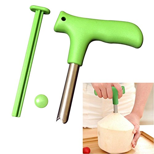 No more dangerous sharp knife to open the coconut, try our smart coconut opener, only 3 easy steps-push, twist, and drink, totally frustration free, enjoy fresh coconut water immediately instead of having the stale packed coconut water. Design with T shape large handle, easy and stable for holding. With heavy duty construction, and made from premium food grade stainless steel. Today, coconut has enjoyed a resurgence as a natural super food, rich in body essential electrolytes including potassium, magnesium, calcium, fiber, protein. The most important, it is low fat and Cholesterol free.