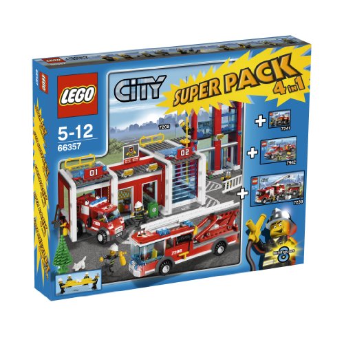 -. Title : LEGO City 66357 - Feuerwehr 4 in 1 Superpack, bestehend aus Hauptquartier (7208), Löschzug (7239), Auto(7241) und Pick-Up (7942)