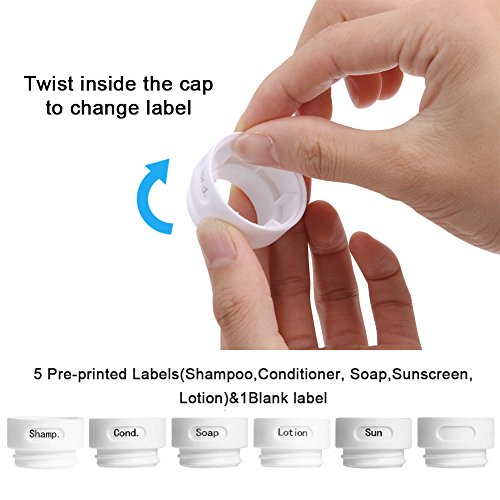 - Easily Identify Contents Travel Bottles- The tags(Shamp, Soap, Cond, Lotion, Sun) were already built inside of each collar and with a twist you could change them.The material of translucent silicone makes it easier to identify contents from liquid, gel, to cream.
