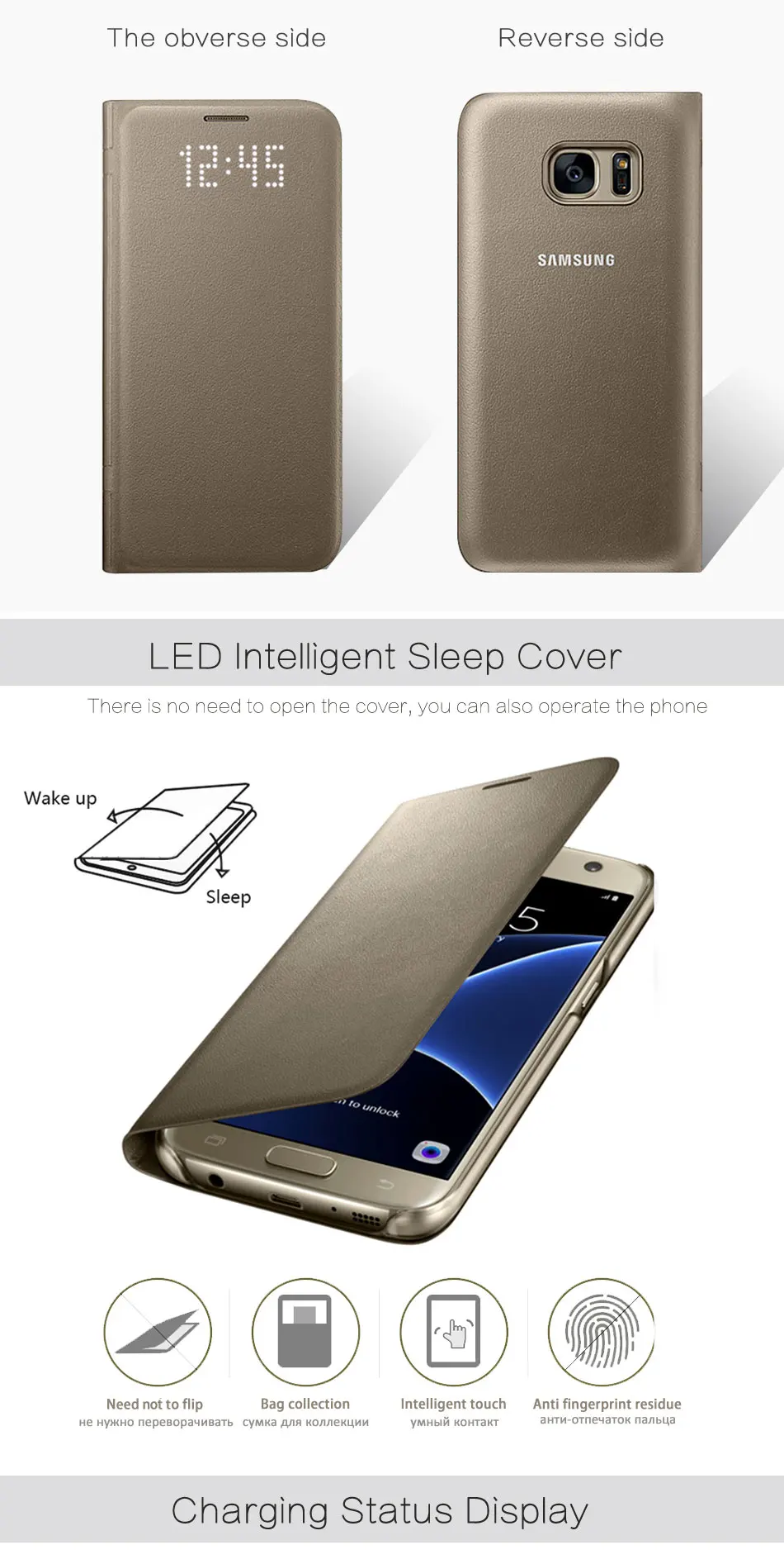 function:Smart LED View Flip Wallet Coque
