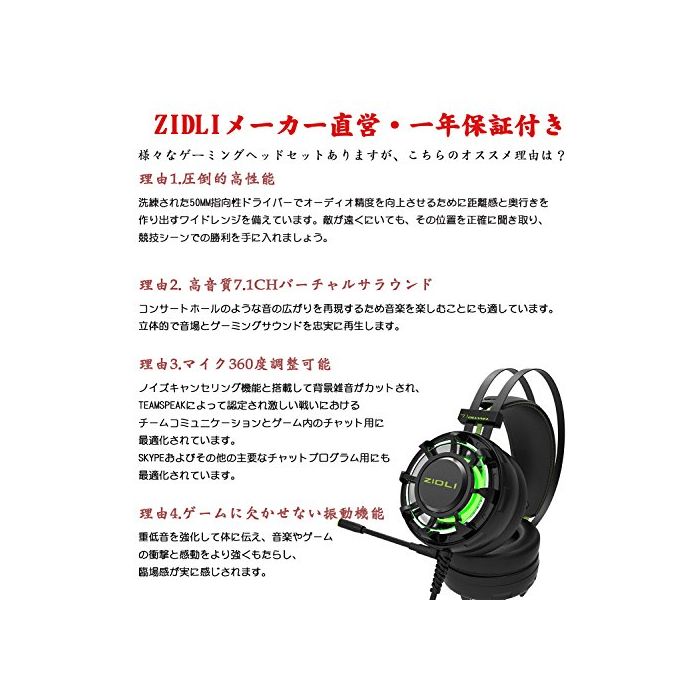 원본상품명:ZIDLI ゲミングヘッドセット 密閉型 7.1chバチャルサラウンド ヘッドフォン USB ヘッドセット ゲムヘッドホン 振動機能 高集音性 マイク位置360度調整可能 ステレオヘッドホン Z